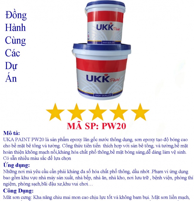 Sơn Lăn epoxy gốc nước UKA PAINT PW20 là sản phẩm epoxy lăn gốc nước thông dụng, sơn epoxy tạo độ bóng cao cho bề mặt bê tông và tường. Công thức tiên tiến thích hợp với sàn bê tông, và tường,bề mặt hoàn thiện không mạch nối,kháng hóa chất phổ thông,bề mặt bóng sáng,dễ dàng làm vệ sinh.Có sẵn nhiều màu sắc để lựa chọn.