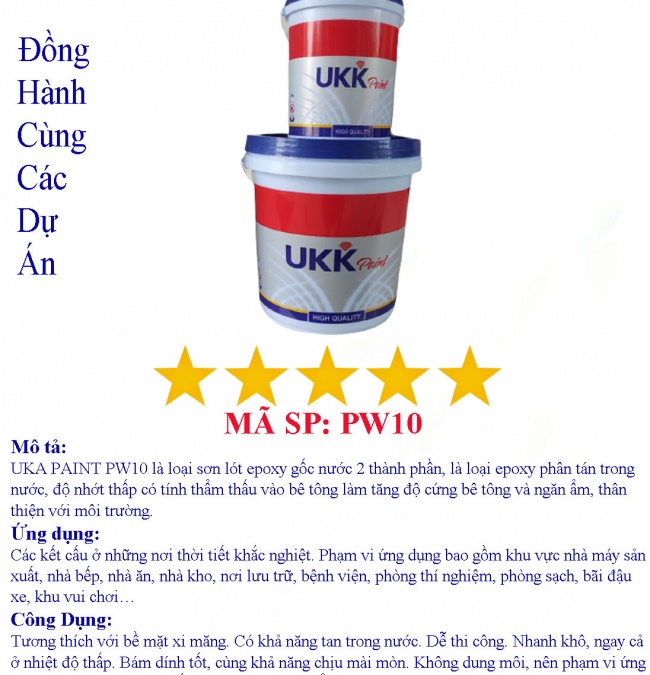 Sơn lót epoxy gốc nước UKA PAINT PW10 được sử dụng trước khi sơn phủ các loại sơn phủ epoxy, tạo sự liên kết tốt giữa bê tông và sơn phủ. Ngoài ra còn